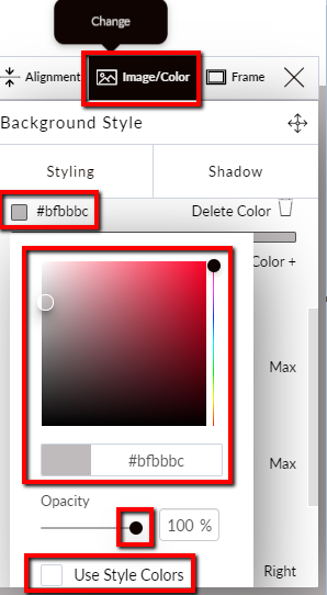 Select “Add Container Color” to add a background color. Select a color from the color wheel or enter a color code. Adjust the transparency as needed.
