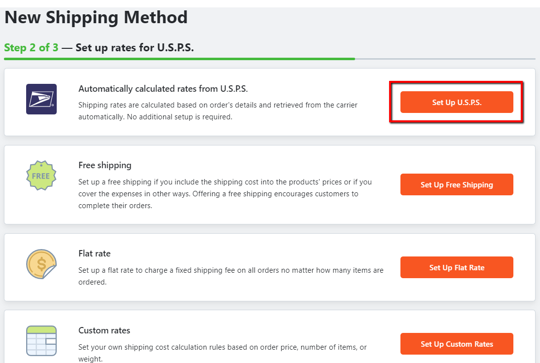 Select the specific shipping method, we recommend Automatically calculated rates from USPS.